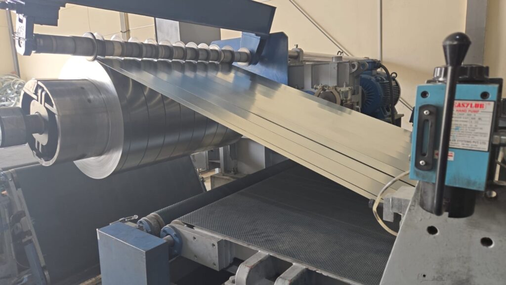 Coil Slitting is a process that is used to cut a large coil of steel into narrower strips to meet specific customer requirements. The process of slitting is essential in high-quality ferrous – nonferrous steel and aluminium coils. Slitting Process is offering Accuracy and consistent cuts.